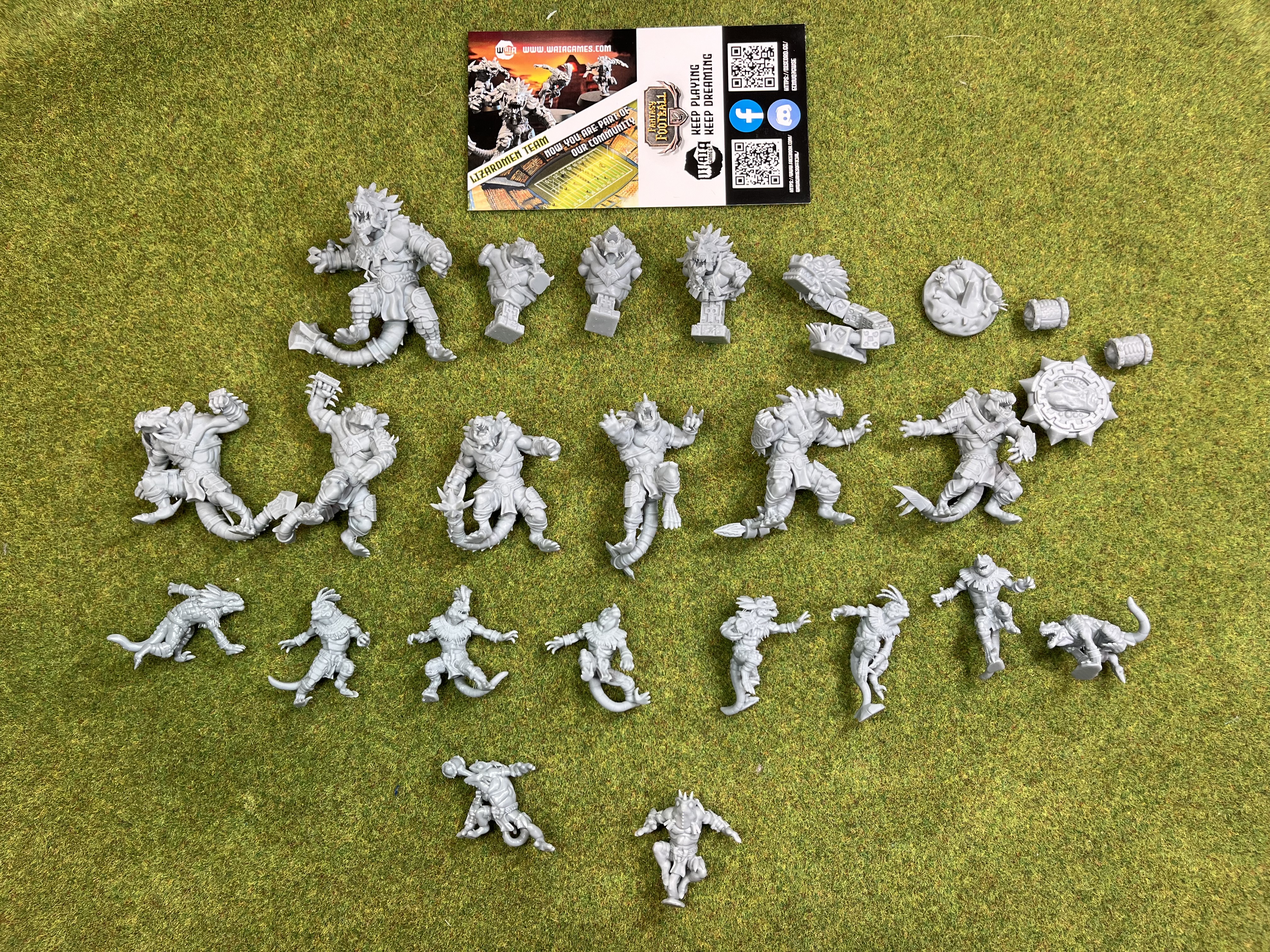 Not only do these have great sculpts but they are all unique poses. If you buy the team from Games Workshop the team is made up from two of the same sprue, and while there are some alternative pieces half the team looks pretty similar to the other half. Additionally, when you buy the team from Waia games you get enough miniatures for a full roster. No need to add the big guy, in this case a Sauriox (Kroxigor), as he is already included.