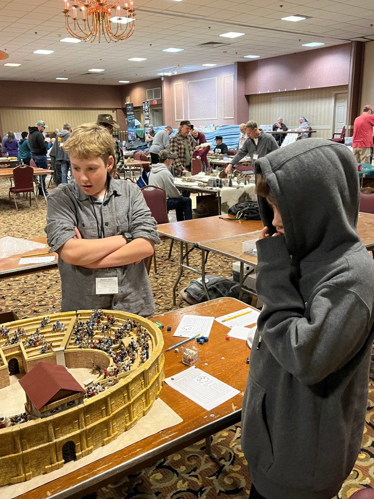 Once again we ended the convention playing Arena Games, but this time the GM had painted but quite the crowd. He assured us at Historicon the arena will feature a sold out crowd! You can still see my gladiators name proudly displayed as the victor from last year, Dadicus The Great!