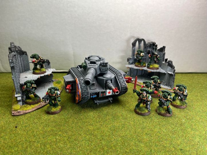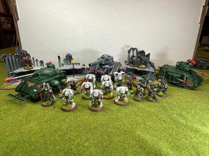 Taking the final photo was worse than that time my Dark Angels squad stepped out of a Landraider into an orbital barrage and got pasted. I just could not get it right and didn’t have much energy for moving lights and backdrops around. So I apologise for the quality of the final photo. When I get the last little bonus models done, I’ll take the time to do it properly and post it. The final army is just over 1000 points (1068), adding to the sizable collection I completed last year. I don’t imagine I will be painting many more of these critters after the last couple are done, though I am really looking forward to using them in a game. As for the next challenge, I will have to see how I am going health and energywise. I would love to paint some Blood Angels commanded by Brother-Captain Tycho and even have some Grey Knights stashed away somewhere…