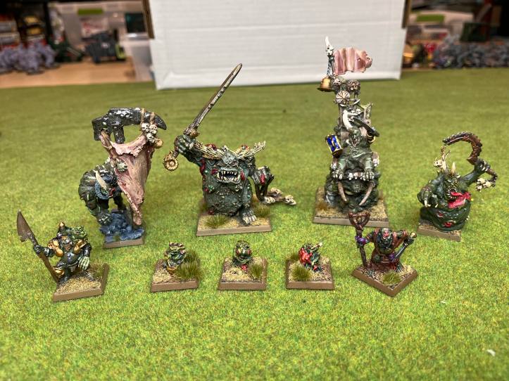 I finally got my order of bases in so I can get my Nurgle Daemon army The Old World compliant. The infantry are most likely going to have base expanders, while the Beasts of Nurgle are going to be rebased entirely. I think everything else is The Old World compliant already but I guess I’ll find out when I get to work. Without further ado here is the army!