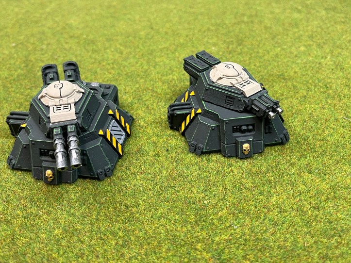 The Legion Defense Turrets come in the most amount of pieces of any of the kits. Each turret requires four pieces. The base is one piece and each turret is three pieces. I didn’t realize this until I bought the set the turrets can be made as one of three weapons. They can be a lascannon, a plasma cannon, or twin mounted heavy bolters. The heavy bolters were a nice surprise as I’ve only seen pictures of the front of the box and didn’t know about them until I flipped the box over after buying it. The kit also comes with enough magnets so you can swap out each weapon and the different power/ammo supplies for each weapon. You only get one of each but it is nice to have the options! Of all the kits this is the first one I feel the need to really add some paint to for the weapons themselves. The lascannons silver is a little overpainted on the dark green, and the plasma cannon could use some work. I was surprised at how low to the ground these kits are, I thought they would have been slightly taller. Still, they look nice and play the part so are well worth it. This kit retails for $30 USD and like the others are cast in a hard plaster like material.