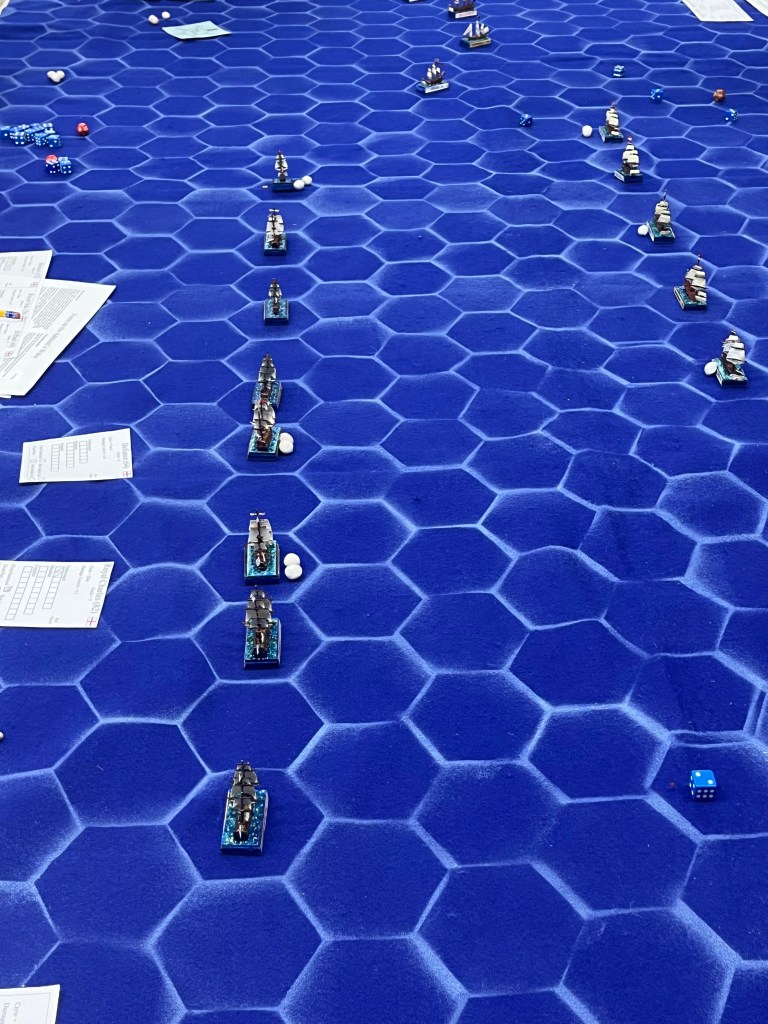 A few shots of the other morning games: Et Sans Resultat, Wake Island Naval Action, and Frostgrave,.