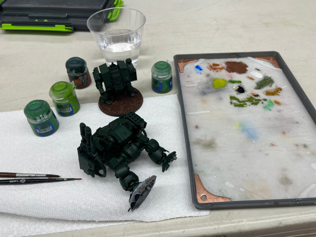 Sunday was more laid back. I got a little bit of painting in for DreadTober, my friend made a big pot of chili and we had a six gladiator Arena Games combat. My gladiator, Rizzicus (see, I can speak “hip!”) got the final kill on Lunchicus Boxicus earning his name on the wall!