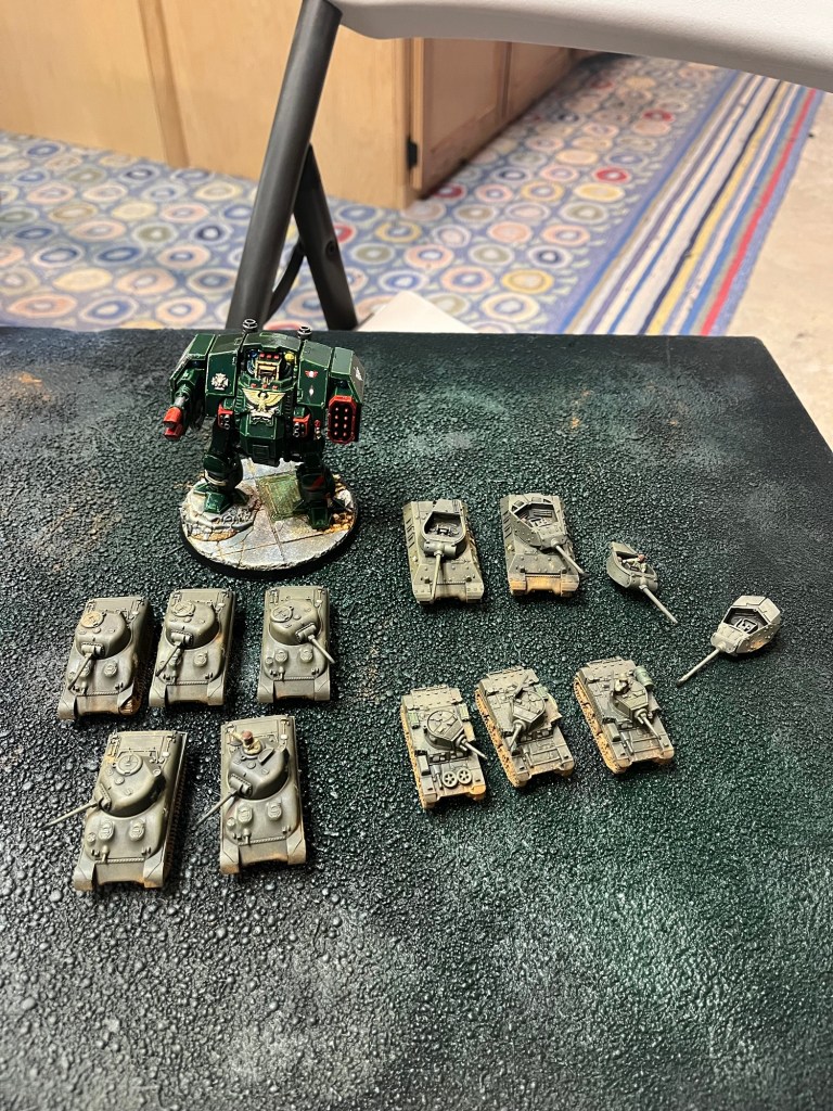 This weeks game night my group worked on our Toys for Tots auction project and I added the decals to my Dreadtober entry. They just need to be matt varnished and they’ll all be finished. The assembly line method really works!