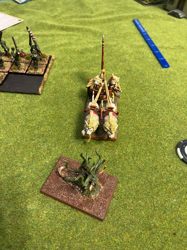 This was a fun game for me, I really enjoyed the extra mobility the Daemon Prince provided. I do need to remember he isn’t as tough as I think he doesn’t have normal Nurgle Toughness or Nurgle Regeneration or Wounds but I can work around that next time. I’m not sure I should take Battle Magic with him in the future as two of the spells don’t help the list but that’s something to think about for next time. I wonder if I can figure out how to fit in a few Furies. Maybe dropping the Beasts back down to two models is worth a shot.