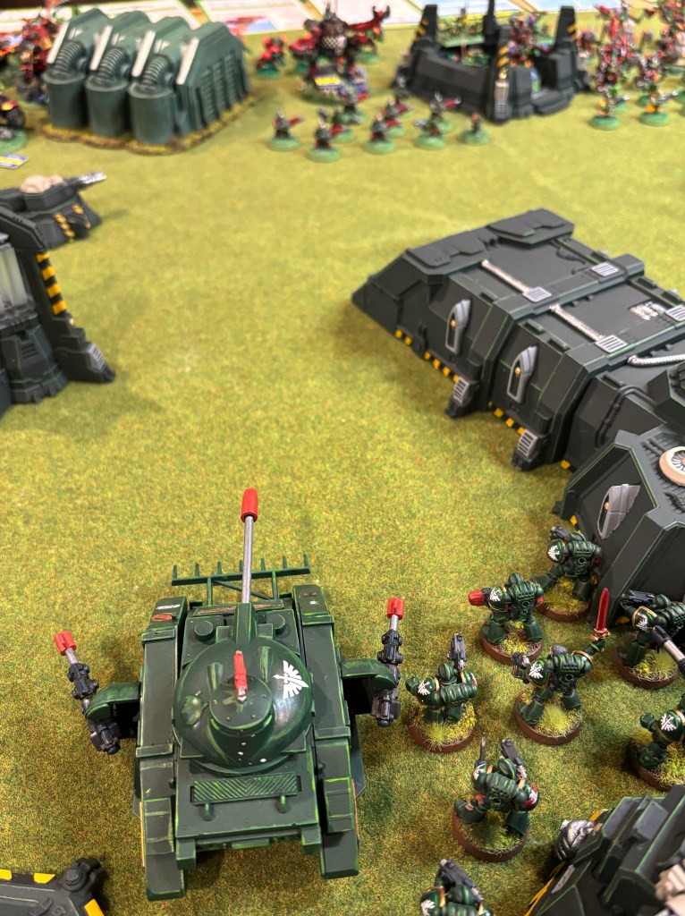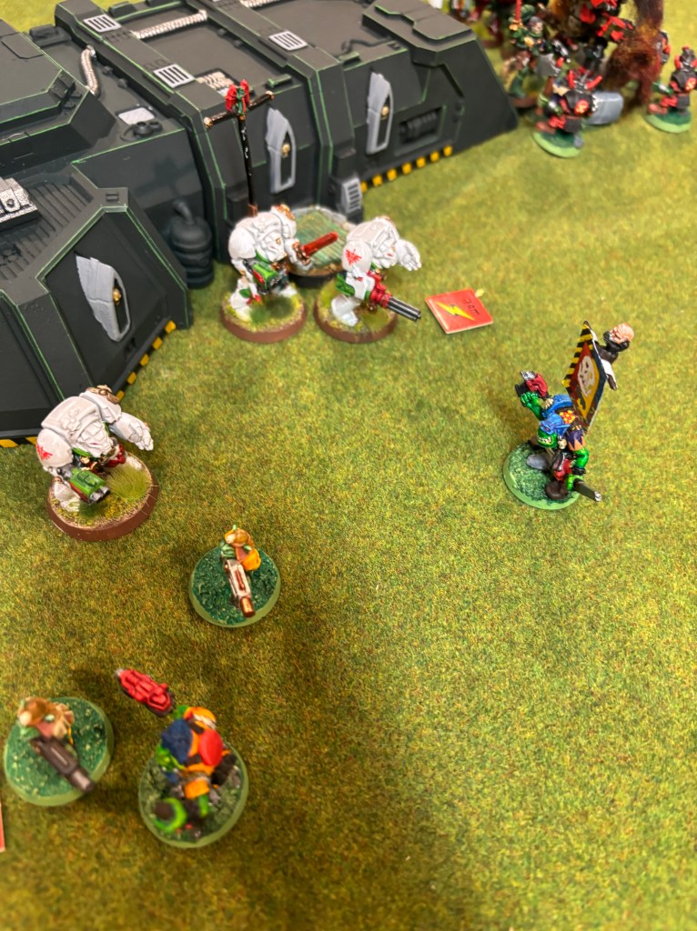 The Dark Angles moved up and headed towards the left of the bunker to stay out of line of sight of the Ork Heavy weapons opposite them.