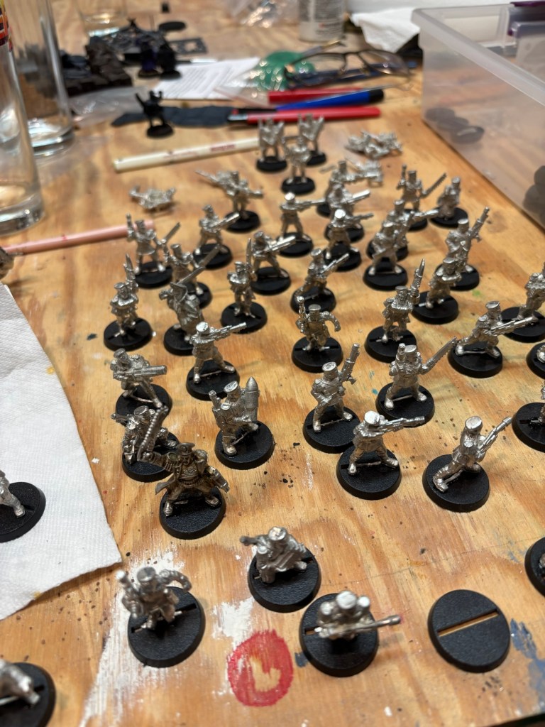 Meanwhile a few of us worked on painting and assembling, including my efforts and cleaning up some figures for my 40K Second Edition Challenge. I had already spent two hours scrubbing old paint off a few squads this morning so I made some solid progress today.
