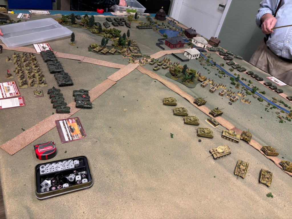 The Soviets had some lucky shooting early in on my side of the table which made it difficult for the Germans to launch an attack. I didn’t help they were quickly surrounded due to the deployment rules either! Still, I think with another hour of play time we would have had enough forces left to push into the village and take the bridge. Still, you have the time you have but it makes a fun what if?! On the other side of the table the Soviets were able to push the Germans off the ridge, but due to a timely counter attack by massed Panzers the ridge was retaken. That side of the field was a total slaughter of the Soviet attackers, but it was a close run thing! I think if we had used our two Tigers to force the village on my flank we still would have held out on the far side of the board, but that’s a debate for the pub after the game!