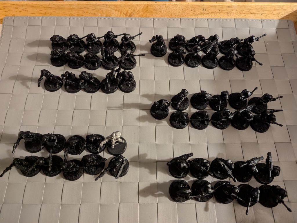 There are a couple pieces I haven’t finished printing as yet hence the couple empty bases and few missing bits here and there. I can’t wait to get these boys on the painting table and then the battlefield!