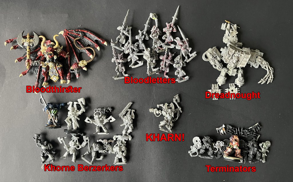 Sadly the Keeper of secrets and basic marines are incomplete so I’ll have to do some kitbashing to complete them. I’m going to strip off the bit of paint that is on these so I can work from new. There’s a fair bit of excess models beyond this also, so hopefully I can participate next year when it comes around.