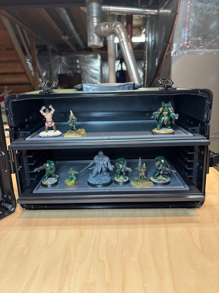For a while now I have been magnetizing my troops and storing them in Sterlite containers with magnetic sheeting. I don’t do a lot of travel but as I have been going to Adepticon I have been looking for a way to transport my figures in something sturdier. A friend of mine has had the Half-Size case from TABLEWAR for transporting his competition pieces to local tournaments and he told me about the Mini case which is small enough to be carryon and fit under an airplane seat. As I really only travel for skirmish games this sounded perfect for me. TABLEWAR had a Christmas sale so I decided to ask for the Mini Case. Christmas day arrived and Santa placed this awesome kit under the tree!