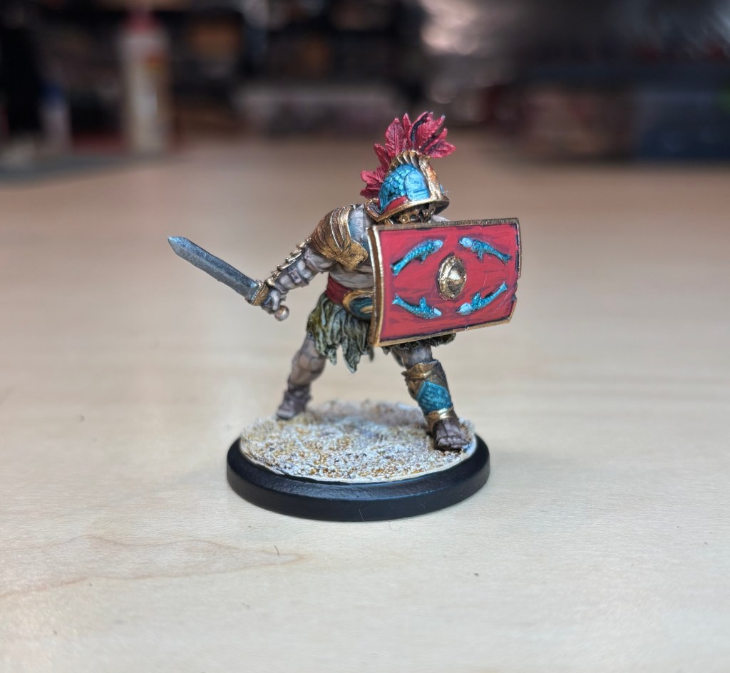 My Otho Mentulus was further along than I thought but I hadn’t touched him since last year so it took just a little bit of figuring out what colors I was using, but I was actually able to figure it out pretty easily. I also needed to repair his sword as it had snapped off but with a quick pin it’s stronger than ever! I’m glad I have this bruiser done, and look forward to the next member of the Ludus!
