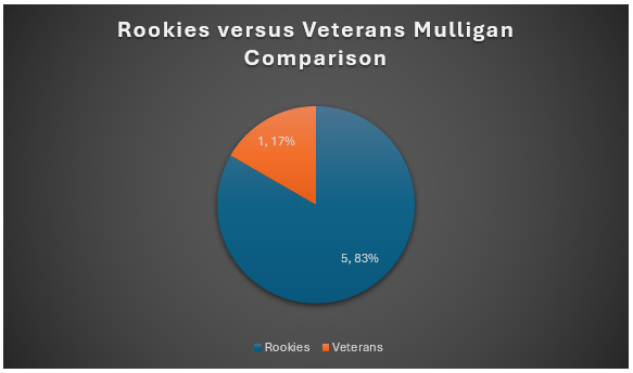 I thought it would be interesting to see how the mulligan use broke down between rookies and veterans. 5 rookies used a mulligan versus only 1 veteran. Looks like using a mulligan in month 1 was a rookie move!