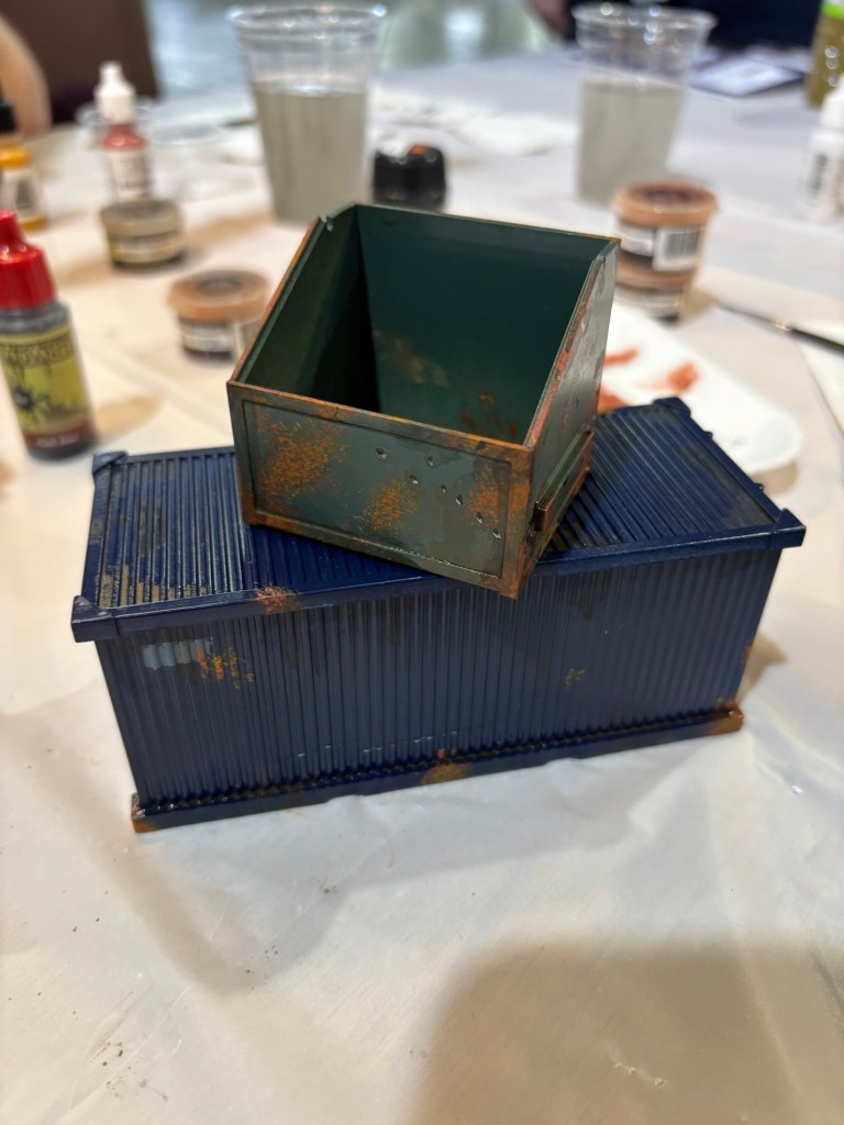 One of my students painted this dumpster, and I demonstrated on my dwindling supply of shipping containers.