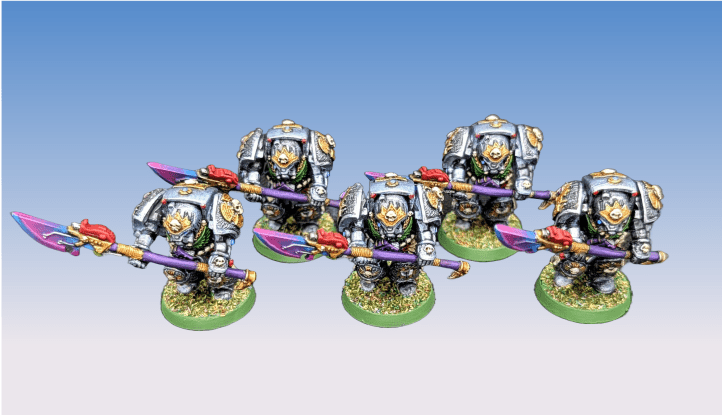 1 x Terminator Squad: Consisting of 5 Marines wearing Terminator armour and equipped with Storm Bolters, Targeters and Power Fists. In addition one Marine has exchanged his Power Fist for a Chainfist and one Marine has a Cyclone Missile Launcher.
