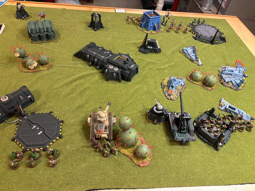 Two of us played a game of 2nd Edition 40k, while another friend worked on his Warhammer The Old World Dwarf army. Another buddy worked on his 2nd Edition Challenge entry but I didn’t snag a picture. You’ll probably be seeing his results in a few weeks anyway! I’ll be doing a battle report in a later post so I’m not going to share too many pictures or the results of the battle!