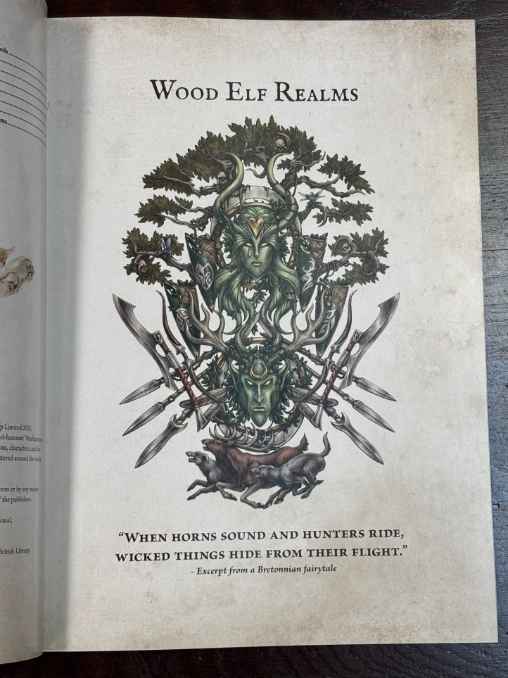The Arcane Journal Wood Elf Realms just came out and having played Wood Elves in the past I couldn’t help but pick it up! Like the other Arcane Journals this is a 48 page soft cover book which provides additional background, two Army of Infamy army lists, a scenario, new troop and character types, two special characters and 18 additional magic items. It also contains a lore of magic, The Lore of the Wild, and rules for upgrading your characters to be from different Kindreds.