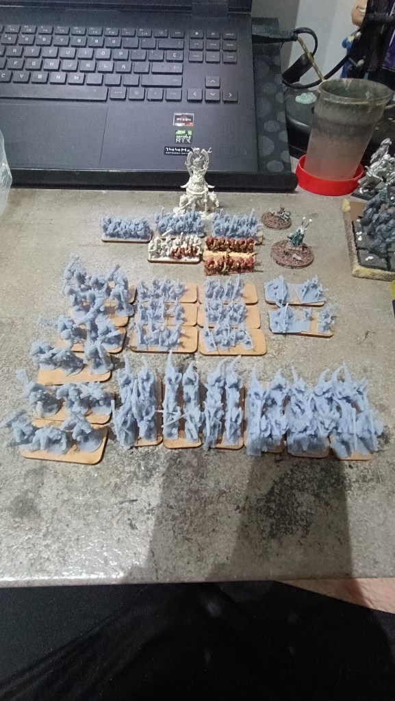 Since I didn’t know what I’d need and my friend who was doing the printing doesn’t know anything about Warmaster I ended up with a fairly random assortment of troops printed. I ended up with way to many banners and not enough rear rankers so some of the Spear Elves you see will likely be swapped out for regular infantry when it comes time to painting them. I know Chariots aren’t the most ideal use of point but again I ended up with a ton of chariots, so much so I may end up painting them for a mini chariot racing game!