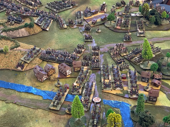 Sazonov attempted to halt Oudinot’s forces but was quickly pushed back. The Bavarians in Spas rolled really well and were able to force the Russians who assaulted them to Withdraw, however, on their right flank the Russians and the Bavarians mauled each other forcing both Formations to Withdraw!