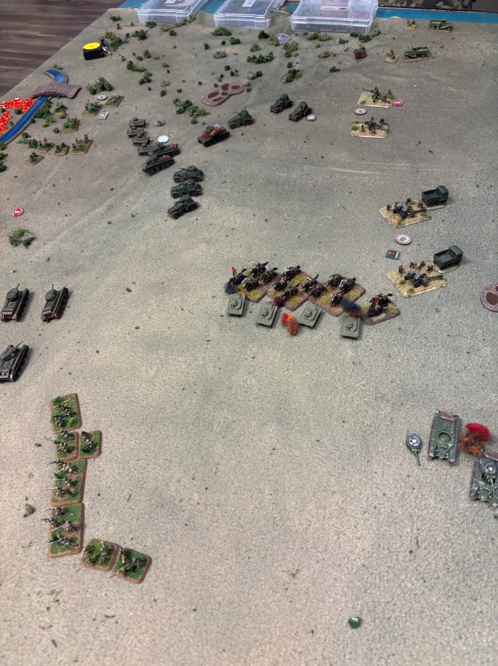 On the Soviet side of the battle field the BT-7 company that came on the middle of the board took a loss from a Soviet anti-tank gun but they managed to kill the gun section before moving in to destroy the stranded infantry in the middle of the board.
