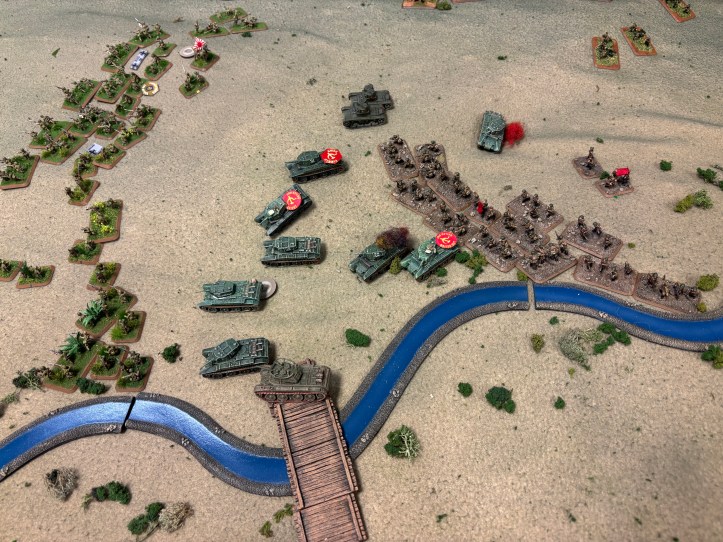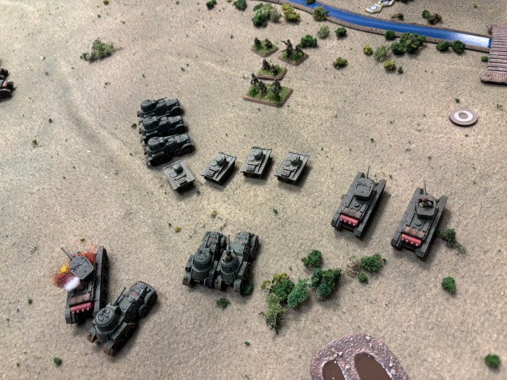 The BA-10’s slowly trundle on the field to support the BT-7’s. Will they get to the bridge in time to take it back?