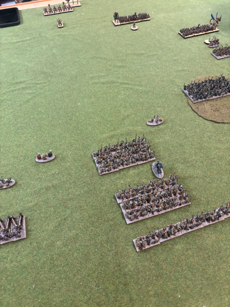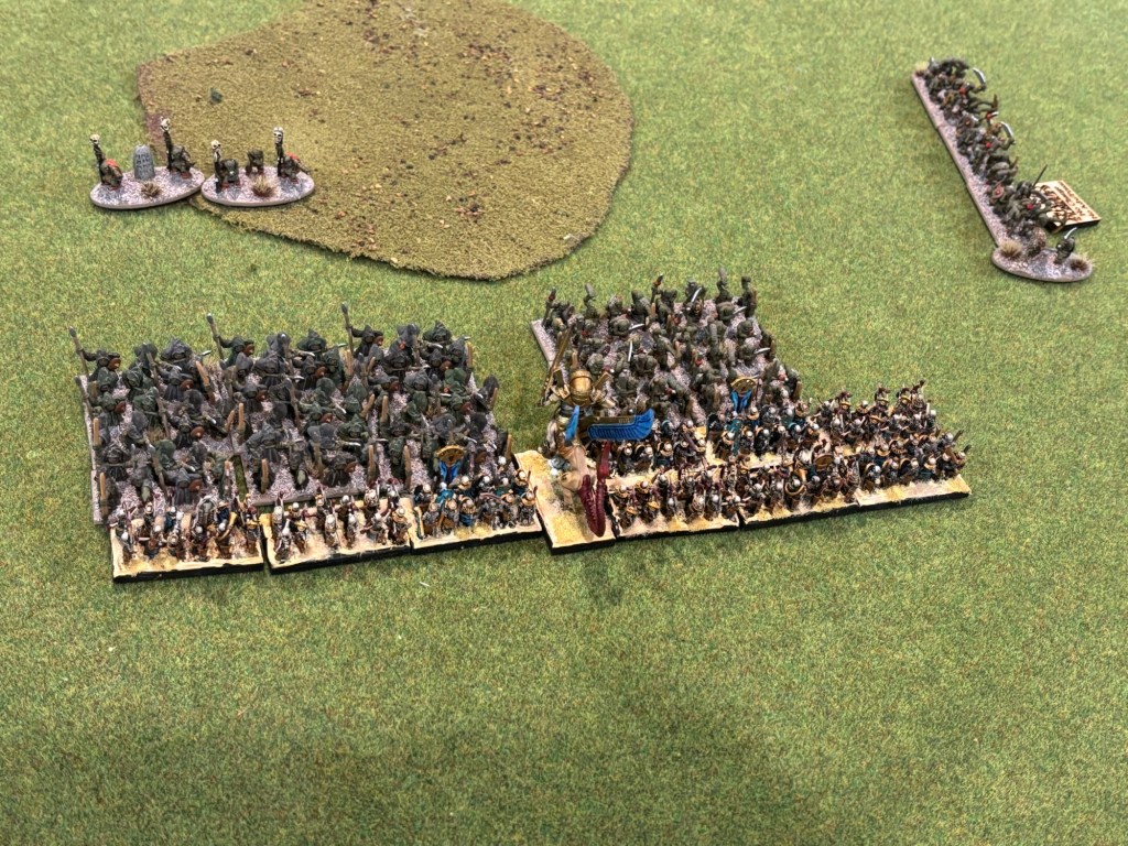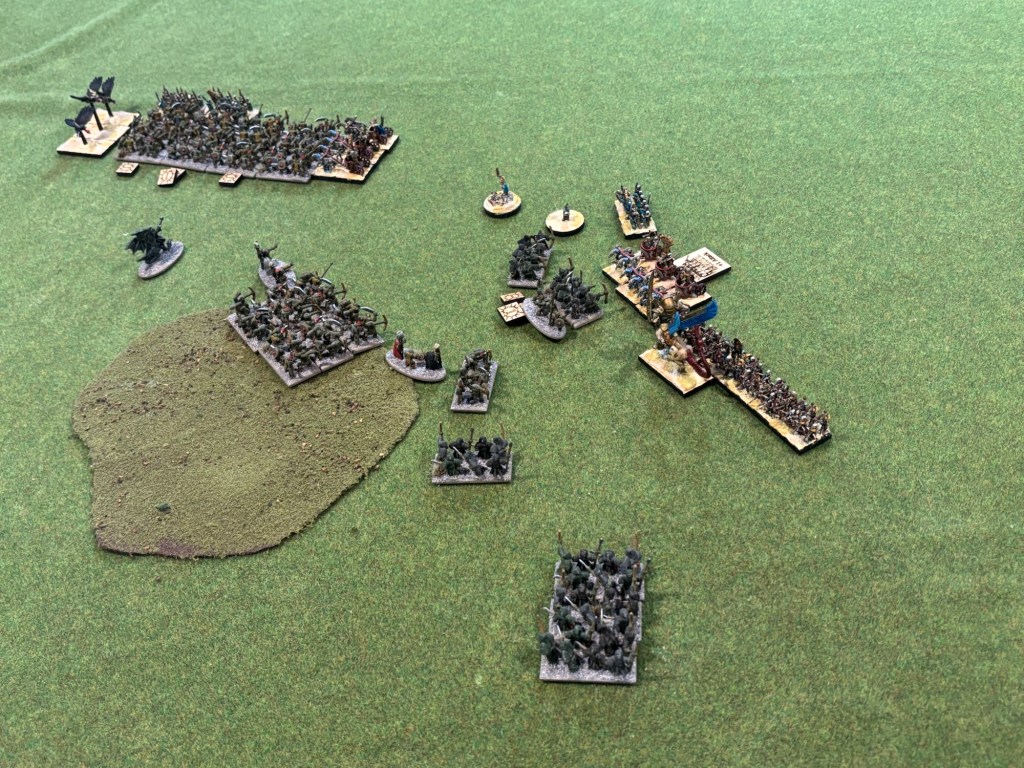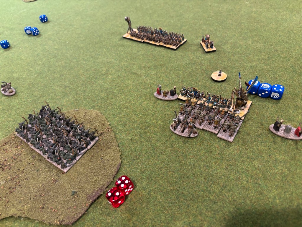 The Warmaster game saw my friends newly painted, 3D printed Tomb Kings against a classic metal Goblin army painted twenty years ago! The game swung back and forth but ended in victory for the Tomb Kings. The greenskins will have their revenge though!