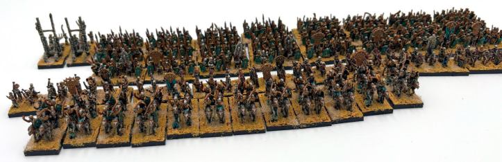 I have to say I feel a bit like our hapless orc hero, S’Mukkabelli, with the way things have been going for me. For the first time in years I used white prime on miniatures, priming my archers and bolt throwers with white as they were going to be largely light colors. I ended up spending so much time painting the metallic elements black I didn’t even get close to finishing the archers. On top of that every time I picked up my bolt thrower crews I realized I had broken off another bolts fletching. I decided to hold off on finishing off the archers and restart the bolt thrower crew. I was a lot more careful and using black instead of white helped me move right along. I know next set of archers I paint will be with a black basecoat but I think I’ve gone far enough that I will just press on what I’ve started. I hope to finish them next month, along with the Spearmen so I have a least finished the required troops. This month I also painted a hero, although I accidentally broke his sword off, I was able to glue it back in place. It managed to last so far, we will see how it goes. This is going to be an interesting month between Dreadtober, and a few projects I want to finish by Fall In! in November, but we will see how it goes!