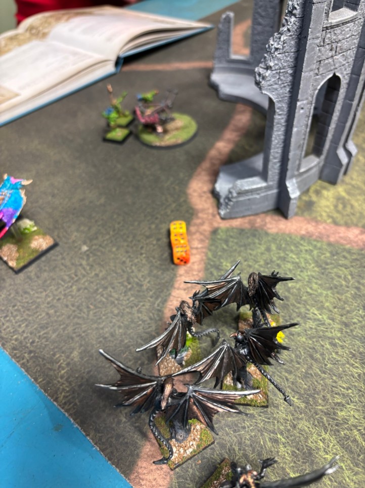 I wanted to see if I could get the Screamers strafing attack to work so rather than charge the unit of Spider Riders the flew over the multi-legged cavalry killing four out of five of them causing the survivor to panic and run!