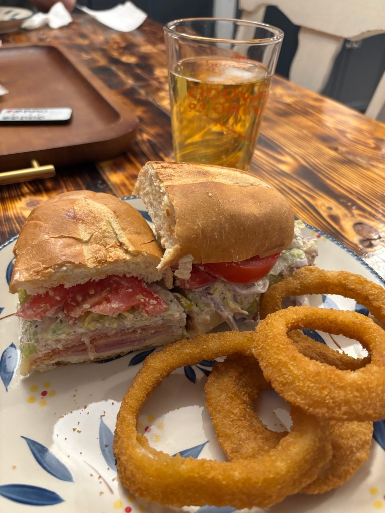 Most importantly we had diner, oven warmed Italian grinder salad sandwiches and onion rings. The “salad” on top combined all the best Italian sandwich toppings and mixed them together. I look forward to making this one again!