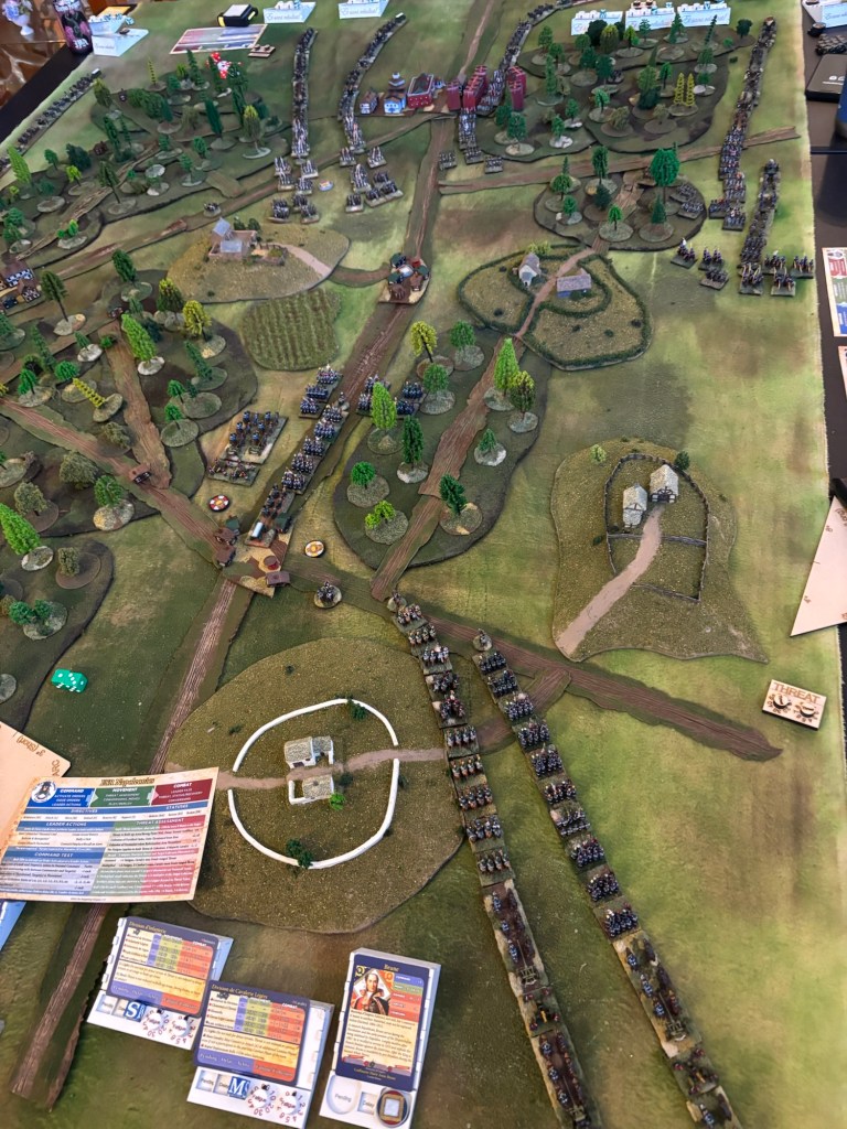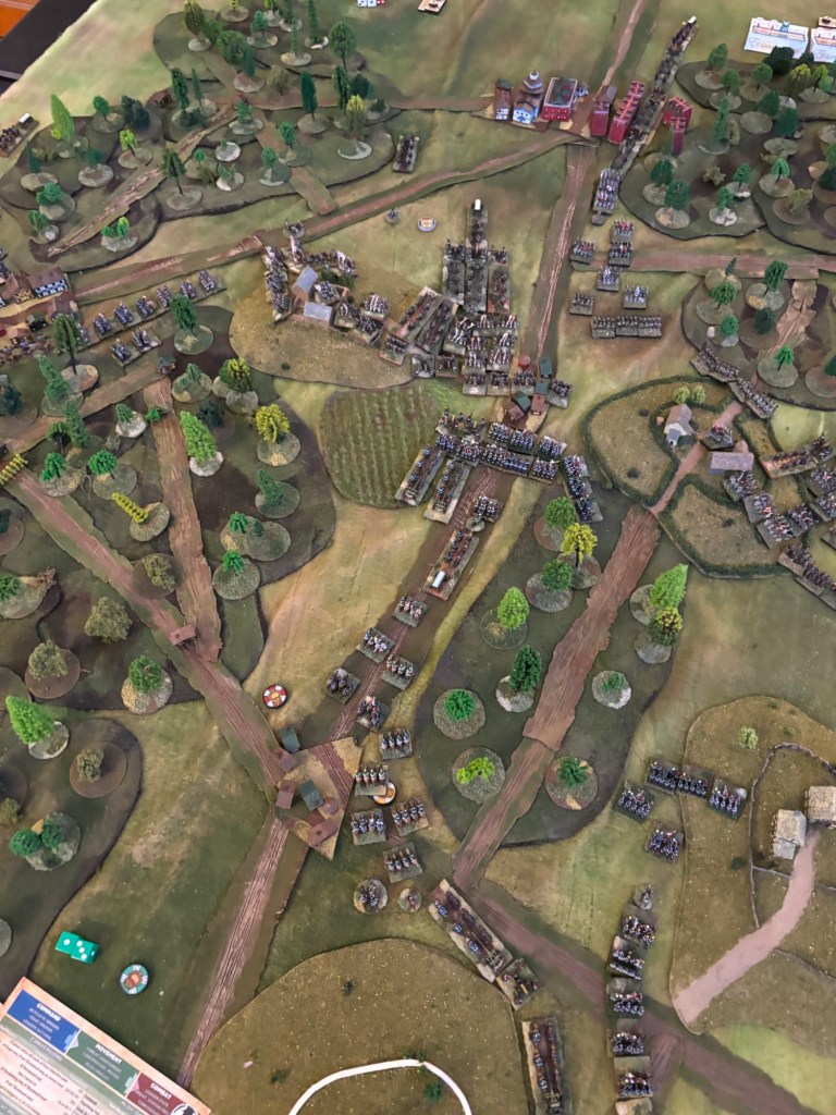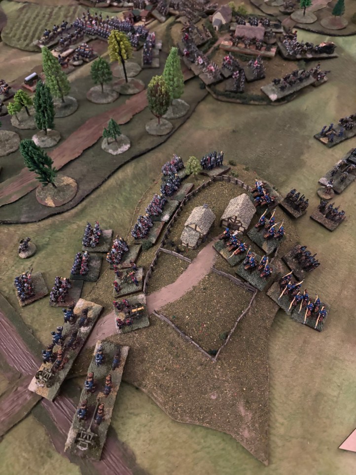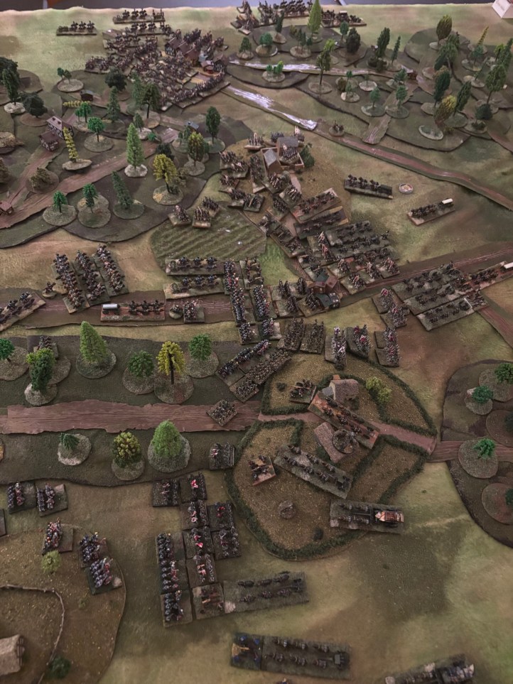 The French had some really bad rolling in the first turn so their troops weren’t able to place an objective and thus were delayed in starting up through that messy terrain!