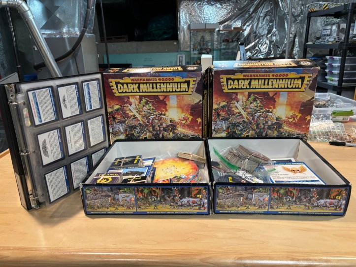 Way back in the late 1990’s I bought both the Warhammer 40k box set and a copy of Dark Millennium with a friend. While my copy of the main box was left with the friend and never seen again I held on to my copy of Dark Millennium for the last thirty years or so. While it was mostly complete a few years ago I found a full copy with the rulebooks and a ton of Datafax on eBay so I had to pick it up. As I only play once or twice a year the two sets were left intermingled and incomplete until I decided not to put it all away after we played The Rescue of Inquisitor Varlak and forced myself to organize everything. It took more work than I thought but in the end it was worth it. Considering my buddy Floyd and I still have to play our end of challenge battles for both Mark VI and Mart VI of the 40k 2nd Edition Challenge this will be a big help!