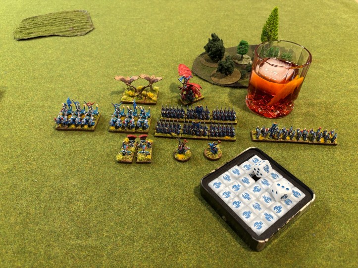 In this case my friend pointed out I could probably paint a dragon in the time I had before the game and luckily he was right! I didn’t have to play unpainted after all! He was a less than ideal use of points in such a small game, but I got to play my first game of Warmaster with a fully painted army and I was very happy about that.