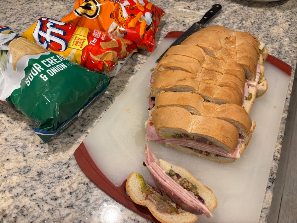 Tonight we decided to do a painting night with who was available and my need to focus on finishing my Warmaster High Elves. As I was coming back from a tournament my buddy brought this massive muffuletta sandwhich which was a very solid call!