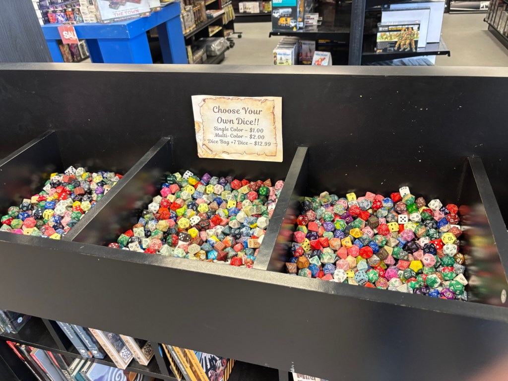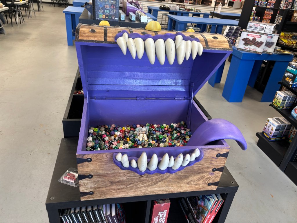 In the middle of the store you are confronted by an angry Mimic, but one that you would probably be willing to face down to get a handful of dice! On top of these seemingly endless single die options you could naturally buy sets too!