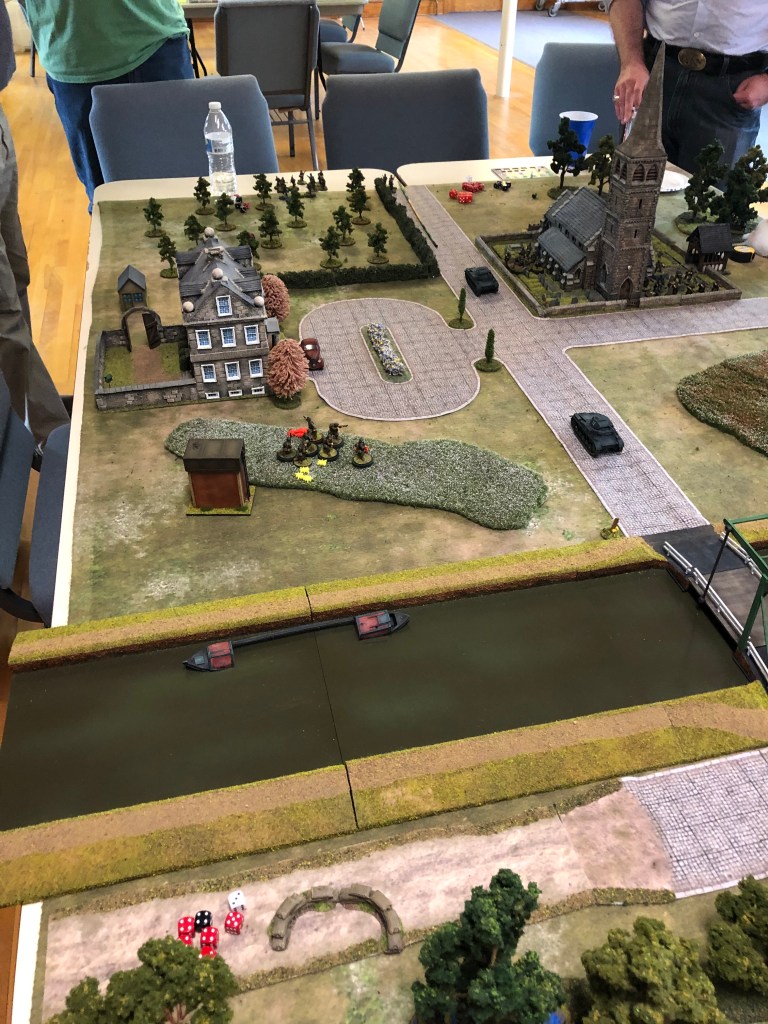 The afternoon game options were What a Tanker! again, Chain of Command in the early war involving a Germans attacking a combined BEF, French and Belgian force who were holding a canal, and an early war east front game, Germans versus Soviets. I opted to play the Germans vs the BEF game. The British were able to blow the bridge preventing us Germans from capturing it, resulting in a BEF victory. The BEF were able to get a few bonus rounds by rolling a LOT of 6’s and the Germans were unable to get the necessary command dice to move their troops forward. The game ended so fast that we played again with some of us switching sides. The second game also ended in a BEF victory, but it was okay, I was on the winning side this go around! Actually after much discussion we decided that the scenario could use some modification if it were to be used again.